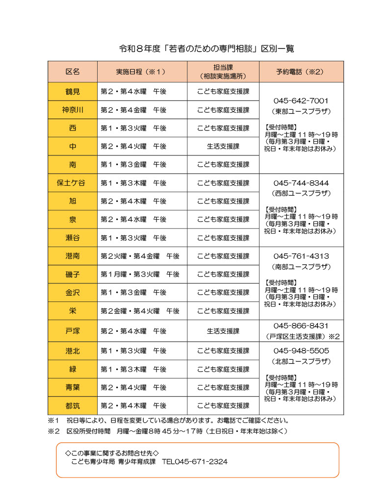地域ユースプラザでは、横浜市の各区役所でひきこもり等の困難を抱える若者の専門相談を行っています。
