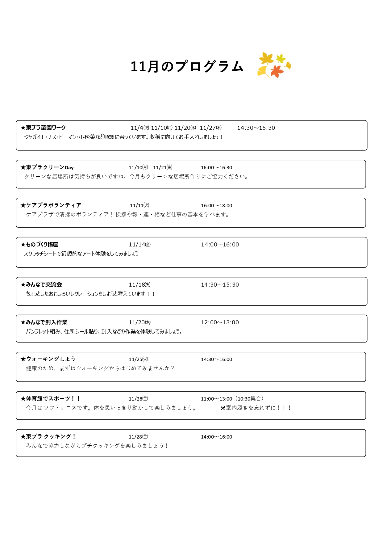 ・最後の時間に、片づけ清掃・消毒をスタッフと参加者で行っていますのでご協力をお願いいたします。