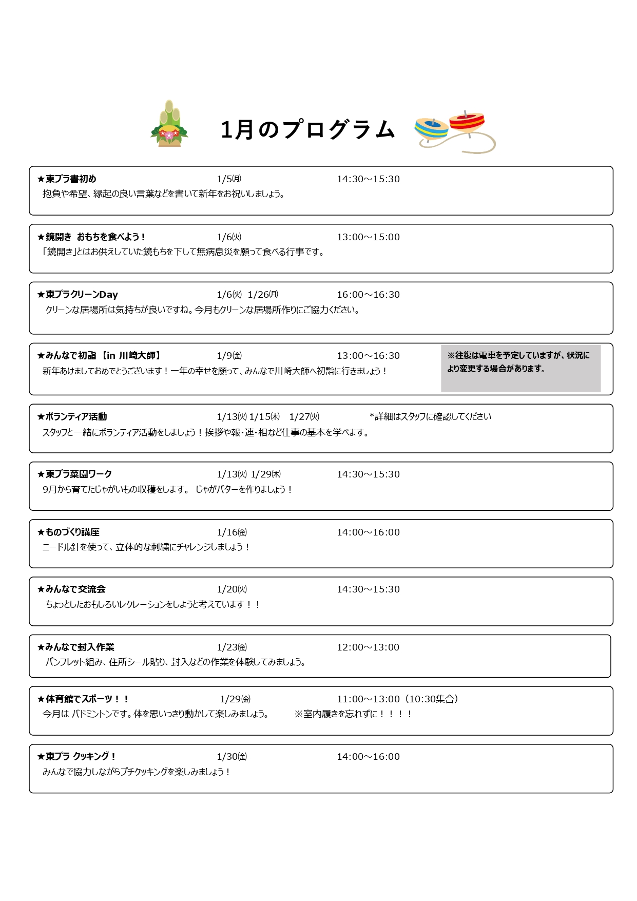・最後の時間に、片づけ清掃・消毒をスタッフと参加者で行っていますのでご協力をお願いいたします。