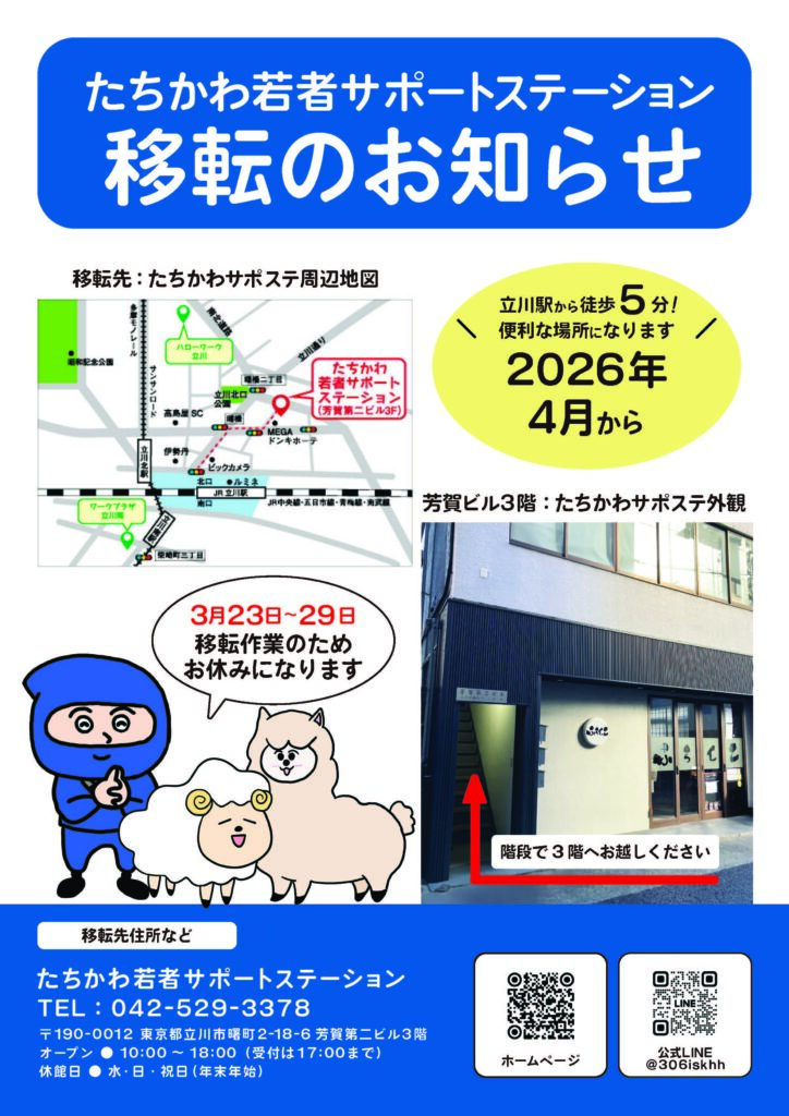 我々、たちかわ若者サポートステーションは4月より移転することになりました!!